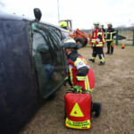 Werden bei einem Verkehrsunfall Personen verletzt, zählt jede Minute. Für Einsatzkräfte der Freiwilligen Feuerwehren bedeuten die Alarmstichworte „Verkehrsunfall mit verletzter Person“ oder „Verkehrsunfall mit eingeklemmter Person“ eine besondere Herausforderung – gilt es doch, die Patienten schnellstmöglich zu versorgen, aus Fahrzeugen zu befreien und dem Rettungsdienst zur weiteren medizinischen Notfallversorgung zu übergeben. Wie gut der Ausbildungsstand der ehrenamtlichen Retter ist, bewiesen am Sonnabend (26. März) Mitglieder der Freiwilligen Feuerwehren von Storkow (Mark). Sie beteiligten sich am Wettbewerb um die „Leistungsspange Technische Hilfeleistung“ in den Kategorien Silber sowie Gold und stellten im Storkower Ortsteil Alt Stahnsdorf ihr Können unter Beweis.